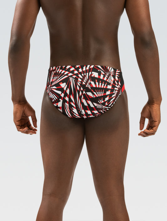 Reliance Men's Atomic Red Printed Color Block Racer Swimsuit